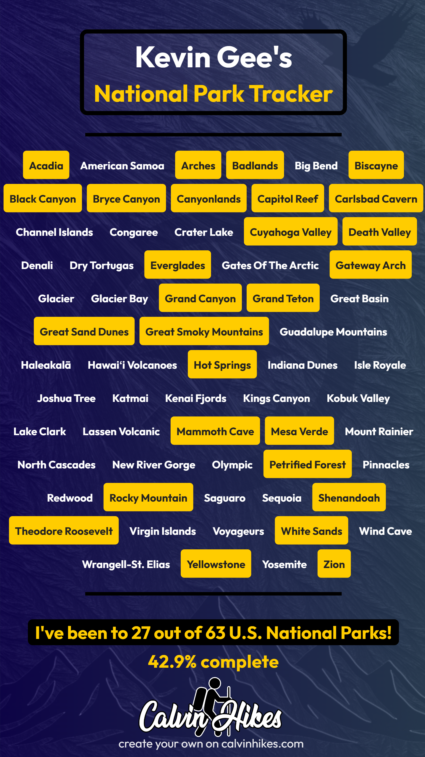 | 27 of 63 US NPS National Parks - List, Visual